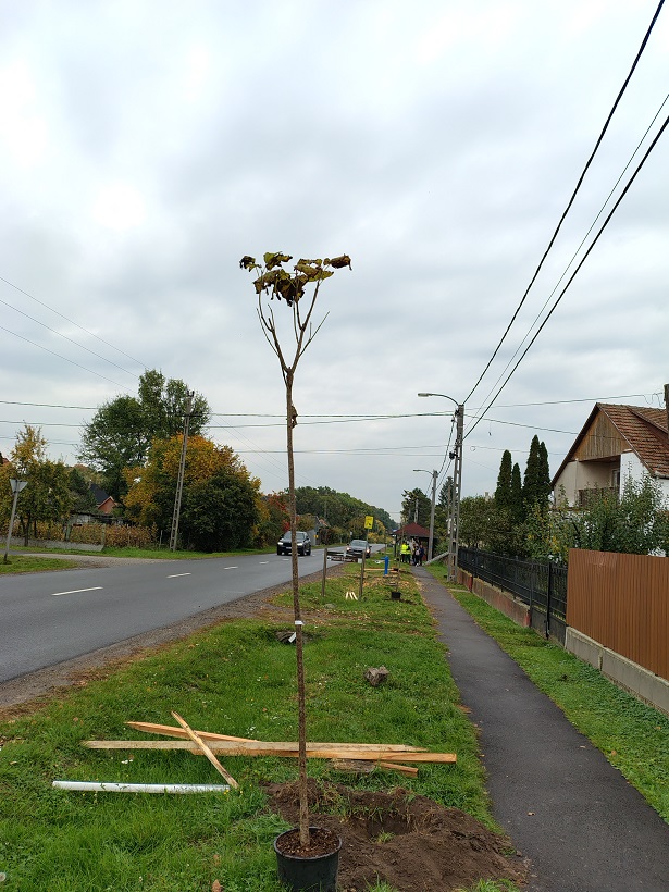 Megkezdődött az Ország úton az új gömb szivarfák ültetése.